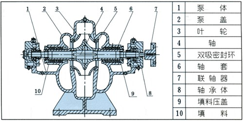 單級雙吸離心泵的工作原理及結(jié)構(gòu)圖