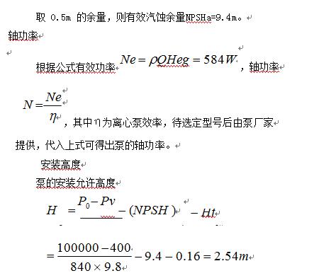 因泵的實際安裝高度需要低于有效安裝高度 0.5~ 1.0m,則取泵的安裝高度為 2m。